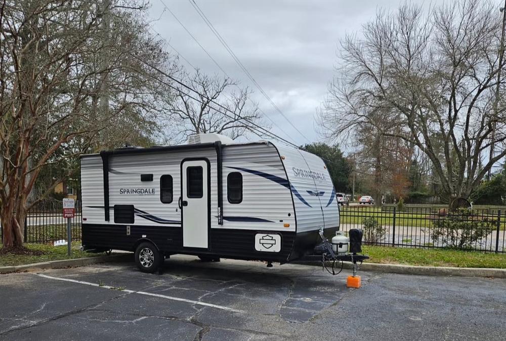 18' travel trailer, bought new in 2021 while we lived in CA. We've relocated to Gulfport for retirement and bought a 5th-wheel - we're full-time RV'ers now.