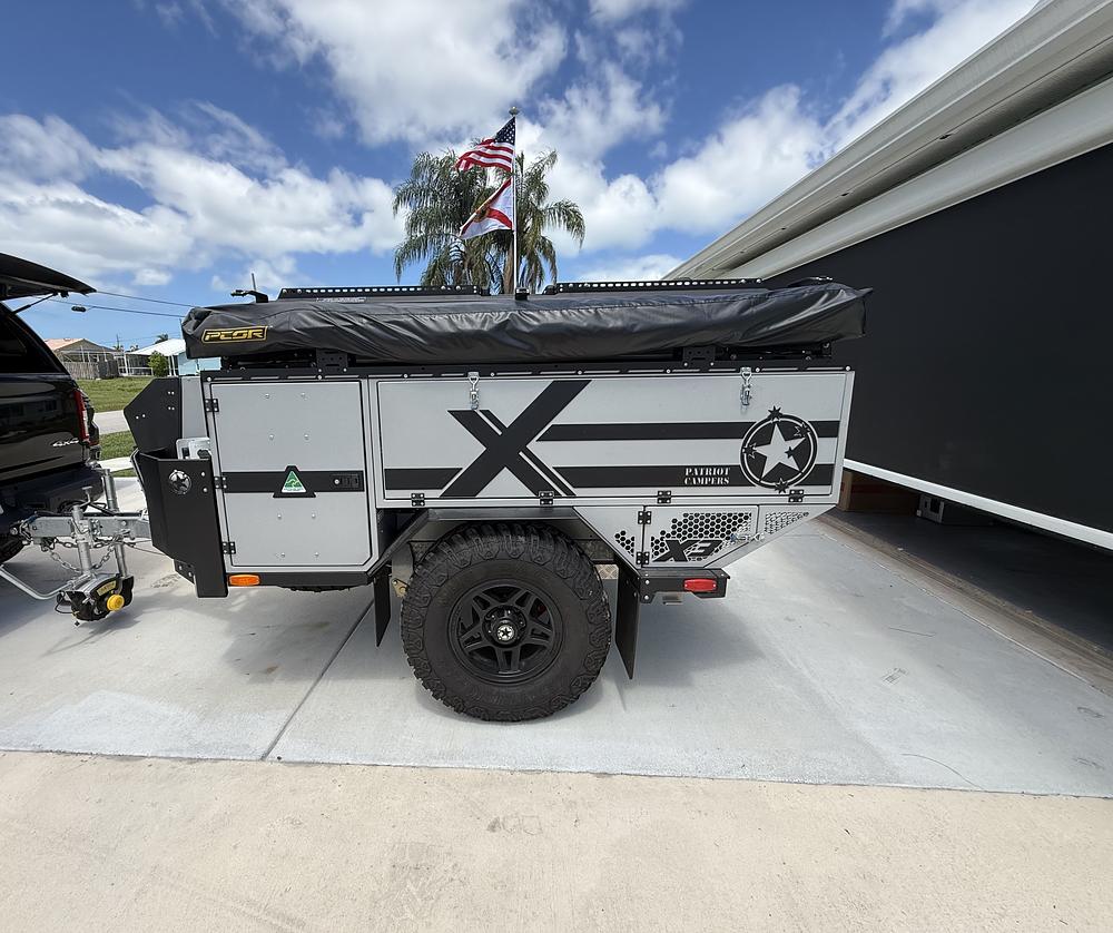 This Patriot X3 Gen 1, was used one time and has been stored inside of our garage. It looks like it just rolled off the showroom floor. This gem will go anywhere your off-road vehicle will take you and is set up for off grid camping. It is fully loaded. Unopened: 12 X 6 X 6. Title and registration in hand.