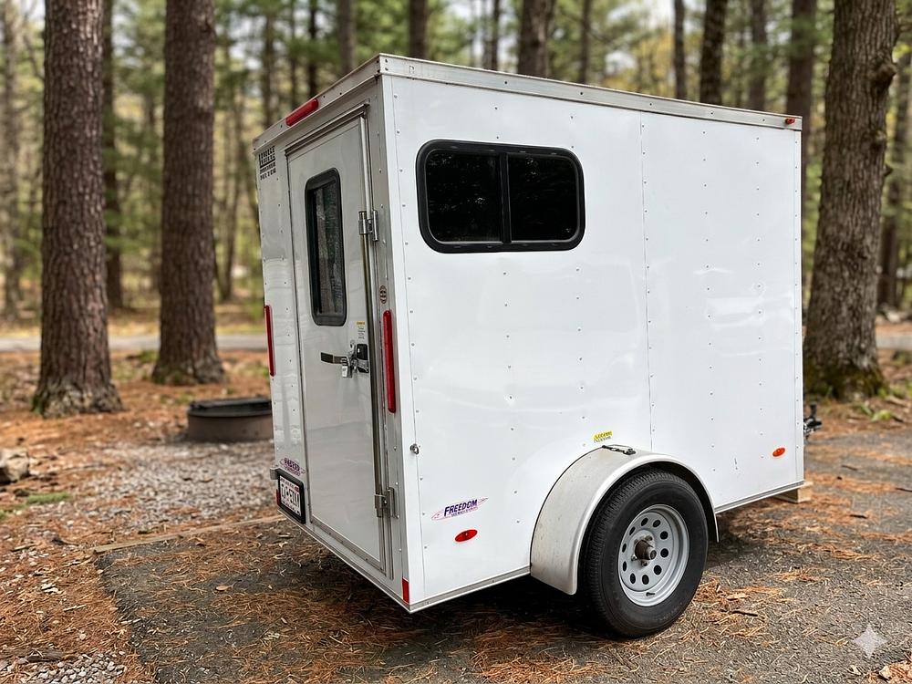 Selling our one-of-a-kind custom-built 2021 Freedom 5x8 camping trailer. This was not a random cargo trailer conversion we had it designed and built specifically to solve a hard problem: we wanted a real hard-sided camper that was light enough to tow comfortably with our Toyota Sienna minivan, small enough to store and maneuver easily, but still able to sleep a family of four.