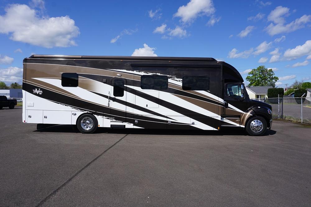 It smells like brand new inside and this is a classic example of WHY BUY NEW. This coach is ALL Electric with Residential Refrigerator and True Induction cooktop, Stacked washer dryer, King bed, Theatre seating, Renegade mudflap, and much much more!