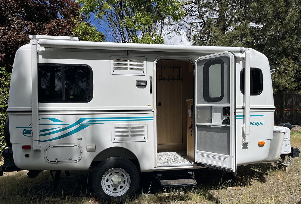 Lightly used 2022 Escape 17B in pristine condition. Used from 4/23-5/25. 8,000 travel miles. Selling due to owners death. Two dining areas that convert to a full and twin bed. Custom designed interior with maple cabinetry. Inside toilet and shower. Lots of storage. Large 4 cf fridge. Solar and propane.