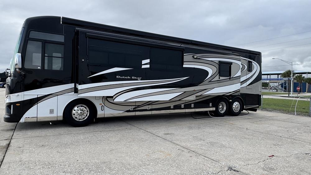 On the exterior, the Dutch Star boasts a sleek design with a full-body paint job, chrome accents, and large windows that let in plenty of natural light. The 4369 trim level includes upgrades such as a power awning, outdoor entertainment system, and extra storage compartments for all your gear. With a powerful engine and smooth handling, this RV is a pleasure to drive on both highways and back roads.