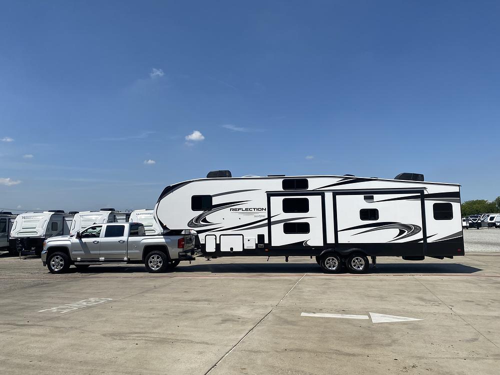 2022 Grand Design 31 MB fifth wheel - Lightly used, with no significant defects - Mid bunkhouse design with 2 bunks - Large living area with recliners in couch - Full size fridge and central island in kitchen -