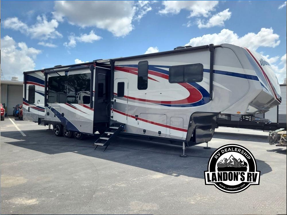 Where do I even start with this particular unit and floor plan. First off this is a THS not a TH. Sometimes that gets easily confused. What does that mean you say?? That means it has a 13' 6" garage vs the 12' 6". A couple other things is that it has a larger kitchen slide with counter space next to range, a third awning on the entry slide for a total of 4 awnings and a different bathroom configuration with double entries. The 397THS is the only floor plan they offer with this big of a garage and a full TWO bathrooms. Lastly, which doesn't hurt either, it is the best priced one in the country with these options and in all original condition...at least that I could find.