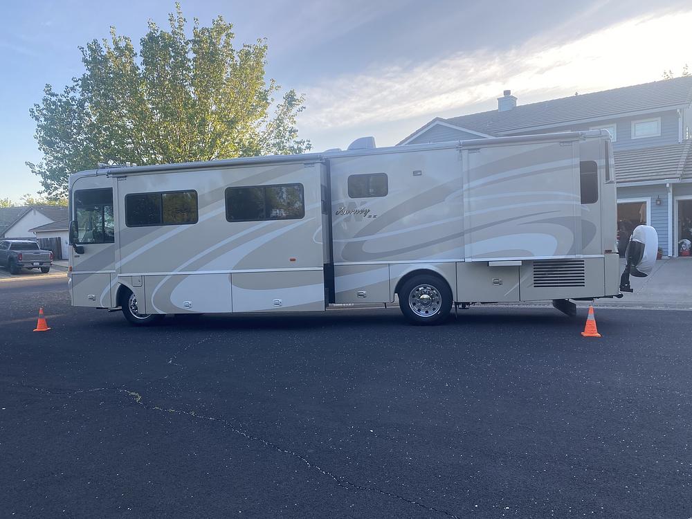 Clean California Coach! Turn key Motorhome clear bra upfront 2022 Michelin tires power door locks on coach and storage compartments new electric awning with remote Apple play on dash upgraded rear camera compressor with air hose for tires large two door 12 V refrigerator approximately 400 W of solar panels on roof. Batteries are two years old paint is an excellent condition. Have new cover valves adjusted one year ago new radiator hoses oil changed every 7000 miles. Sleep number bed and icemaker. generator has 337 hours. Drove to 9000 mile trips around the United States and had zero issues. This is a great coach. Also, it has 5.9 Cummins diesel and Allison transmission. Also has spare tire mounted on back.