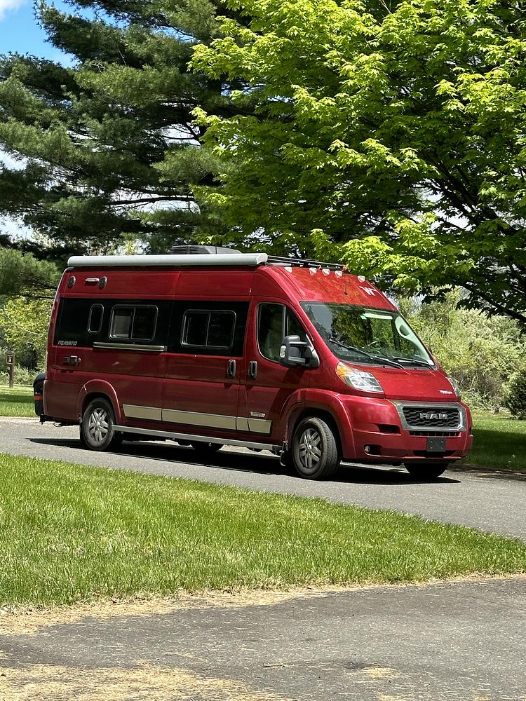 This model sleeps 2 comfortably with bathroom! It also comes equipped with solar panels and generator. Dodge chassis. Bought and diligently maintained through La Mesa RV. Comes ready to play with external storage trunk, double bike carrier, Weber portable grill and all kitchen wares needed to hit the road immediately! Includes Garmin RV GPS. Recent maintenance includes oil change on chassis and generator, new generator carburetor, brand new stereo system in living area, new, larger smart TV added, newer tires, new screen panel, lockable safe, table, 2 desk/tray areas, new windshield, upgraded shower head and sink faucet, $500 surge protector, still under warranty and much more! All cables, hoses, and extensions included. A must see! Interior pix to follow.