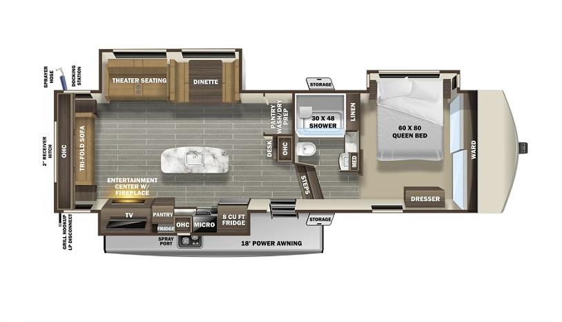The 334RLS model offers ample living space with a large kitchen, dining area, and cozy seating area. The interior is thoughtfully designed with modern amenities and upscale finishes, creating a warm and inviting atmosphere for travelers. Whether you're cooking a meal, relaxing with loved ones, or catching up on work, the Telluride provides all the comforts of home on the go.
