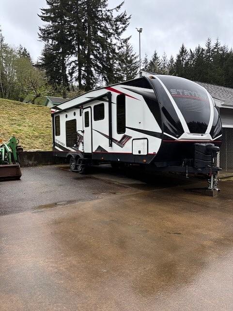 This travel trailer toy hauler sleeps 6 and is equipped with a fueling station, Cummins generator, queen bed, large kitchen sink, high ceiling with ceiling fan, ample storage, TV, radio, ramp patio, including two heavy duty 6-volt batteries added less than a year ago. Specs: 30.75' length, 12,800 lbs. weight, 1 slide out, 30-amp electrical service, 12.83' exterior height, 98-gallon fresh-water tank, 57 gallon gray and black water tanks. Has been stored inside for majority of the time. Must see to appreciate.