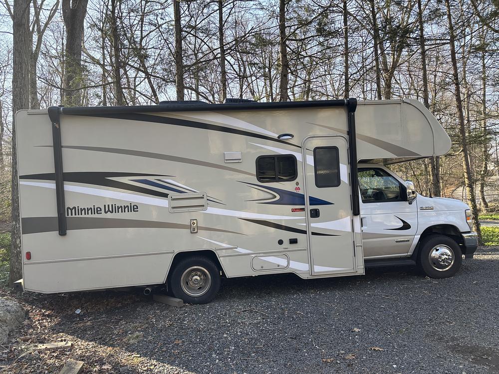 Includes spare tire, slide topper, electric stabilizing jacks. Video camera, driver monitoring system and multifunction touchscreen monitor Apple Car Play and Android ready. Two HD TVs, walk-around queen bed, overhead cab double bed and dinette bed, sleeps 6 total. Large bathroom, onboard Onan generator and propane tank with quick connection line added to use with outdoor propane gas grills. Lovingly maintained by non smoker owners. Oil was just changed by Ford service. 23,869 miles. Located near Hartford, Connecticut. $71,500. Contact rvCTadventure@outlook.com