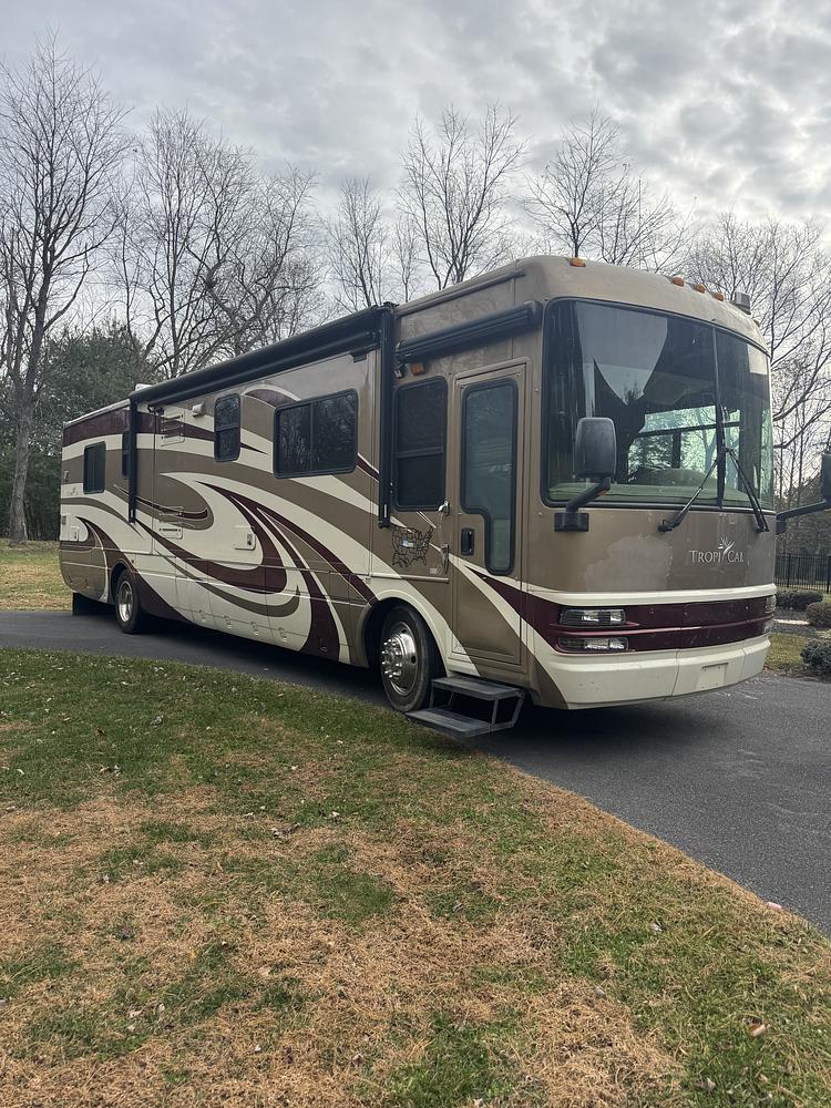 39-foot Class A diesel pusher, Freightliner chassis with a 350HP Caterpillar C7 engine with Allison 6 speed automatic transmission. Three Slide outs, dual AC, 7.5KW Onan generator, hydraulic leveling jacks, convection microwave.