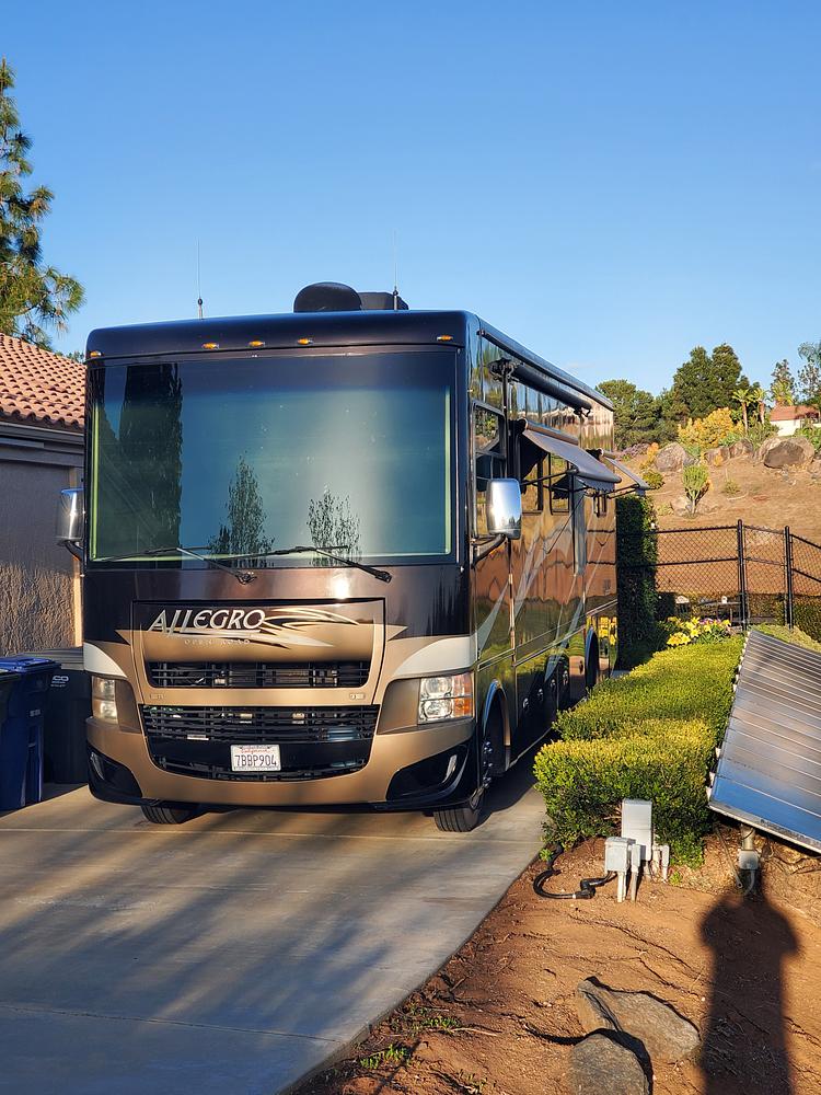 We are the second owner of a 31-footer with queen bed and two slide outs (bedroom and living room (opposite sides). Refrigerator replaced 3 years ago. Five-year old tires. Driver & passengers seats reupholstered. Replaced refrigerator cooling unit 4/15/21. Added 2 driver side awnings and shade screens. Has a faux fireplace. Has a 2-door full size frig with ice maker. Aluminium wheels.