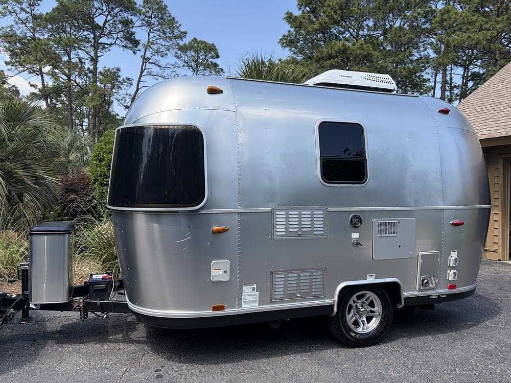 Upgrades: Airstream stainless steel refrigerator vent cover (to prevent water infiltration), Honeywell digital thermostat, upgraded kitchen faucet and bath shower head, warm LED lights, stainless steel propane tank cover. Battleborn lithium ion battery. New tires, trailer brakes, and dealer applied seam sealant in 2025.