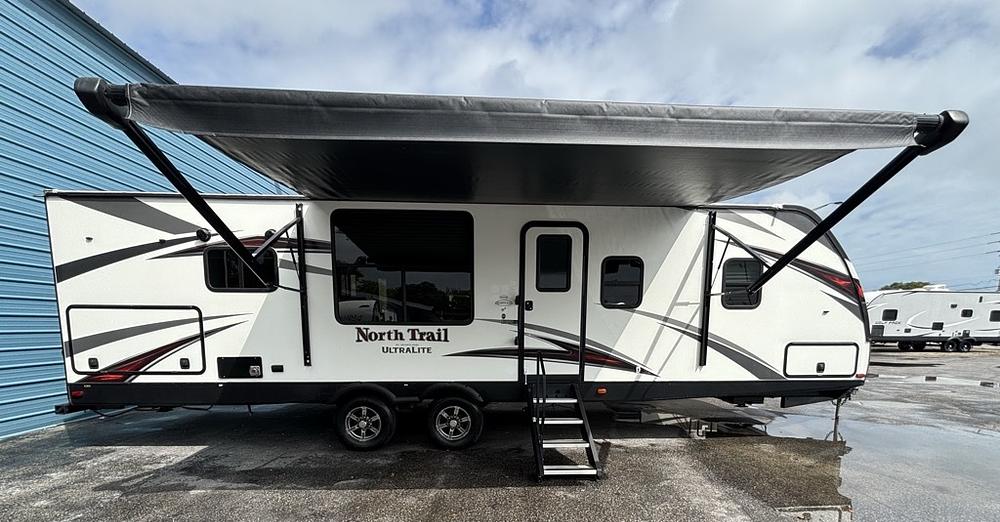 Welcome to your dream getaway on wheels, the 2019 HEARTLAND NORTH TRAIL 28RKDS. This travel trailer is designed for adventure seekers and comfort lovers alike. Boasting a modern and sleek design, this model seamlessly blends style with functionality, ensuring your home away from home is as inviting as it is efficient. Whether you're embarking on a solo journey or a family trip, the North Trail 28RKDS provides ample space and exceptional amenities to enhance your travel experience beyond imagination.