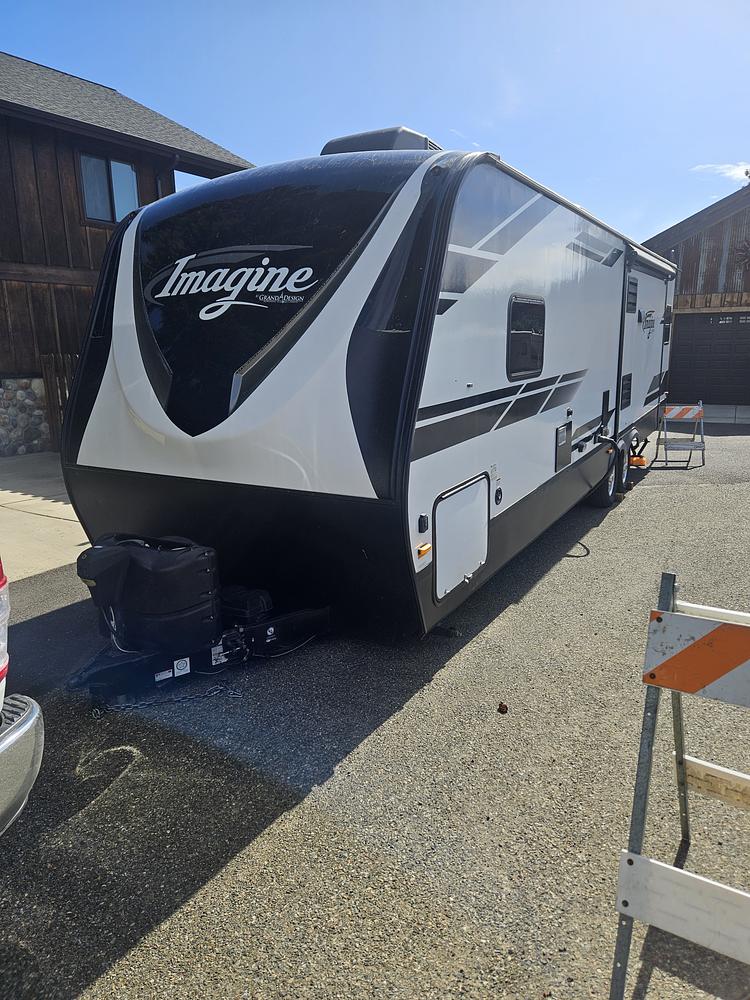 Arctic Insulation package, Sleeps 5, 2 covered slide-outs, 2 Awnings, 50 Amp service, 52 gallon fresh water, 39 gallon black water, Microwave, 3 burner stove w/ oven, double door fridge, pantry, kitchen table with 4 chairs, 2 TV's, fireplace, 2 theater recliners, queen folding couch, queen bed in bedroom, 2 AC units, new tires, spare, rear ladder, Plug ins for solar. Pass through storage. Easy lift hitch with antisway bars. Always covered parking with heat. Clean and well maintained. Non smoking adults only use.