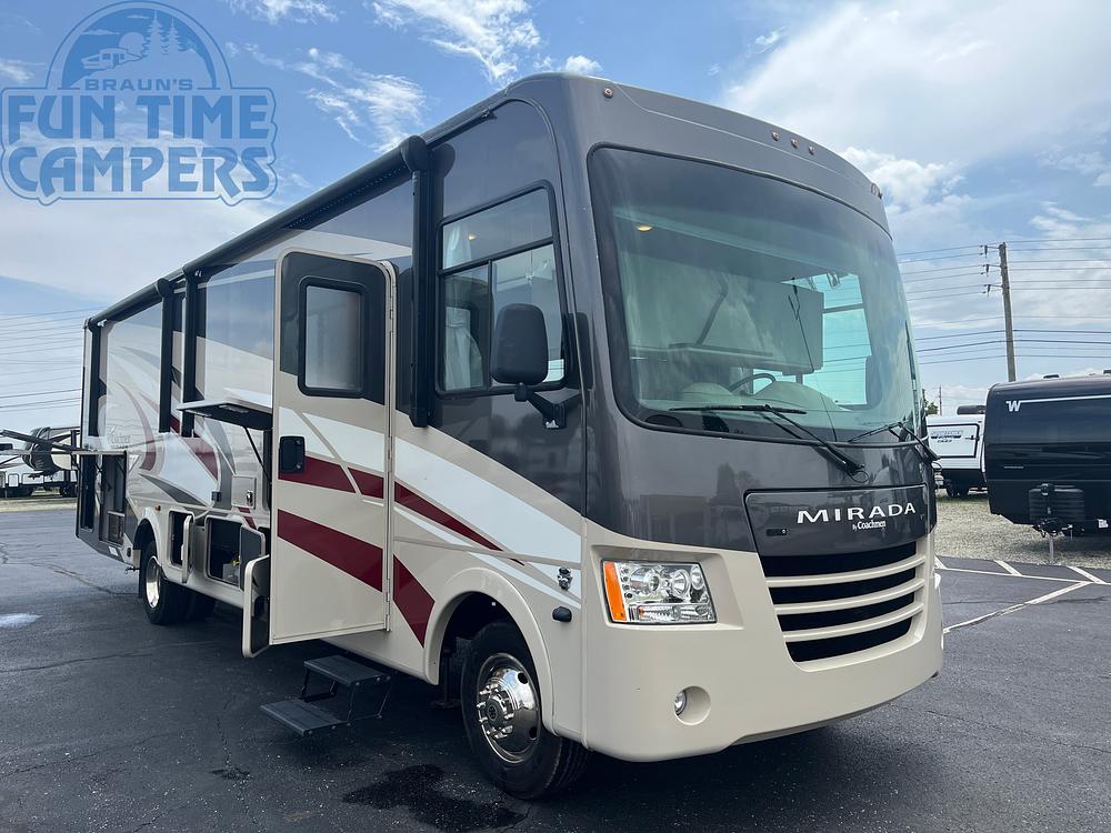 SLEEPS 7, SAFETY BELTS FOR 6, 2-A/C'S, 3 BURNER STOVE W/OVEN, CONVECTION MICROWAVE, 11 CU FT ELECTRIC FRIDGE, SOLID SURFACE COUNTERTOPS, 2-INSIDE TV'S, ELECTRIC FIREPLACE, ELECTRIC CAB-OVER BED, KING SIZE BED, 2-BLUETOOTH STEREOS, INSIDE & OUTSIDE SPEAKERS, USB PORTS, DVD PLAYER, 2 AWNINGS, 1 SUPERSLIDE W/AWNING, SELF LEVELING ELECTRIC JACKS, 5.5 KW ONAN GENERATOR W/303 HOURS, OUTSIDE KITCHEN, BACK UP CAMERA, 10 GAL WATER HEATER, 1.2KW INVERTER, FORD CHASSIS, GAS FUEL, V10, PASS THRU STORAGE, ROOF LADDER, OUTSIDE TV