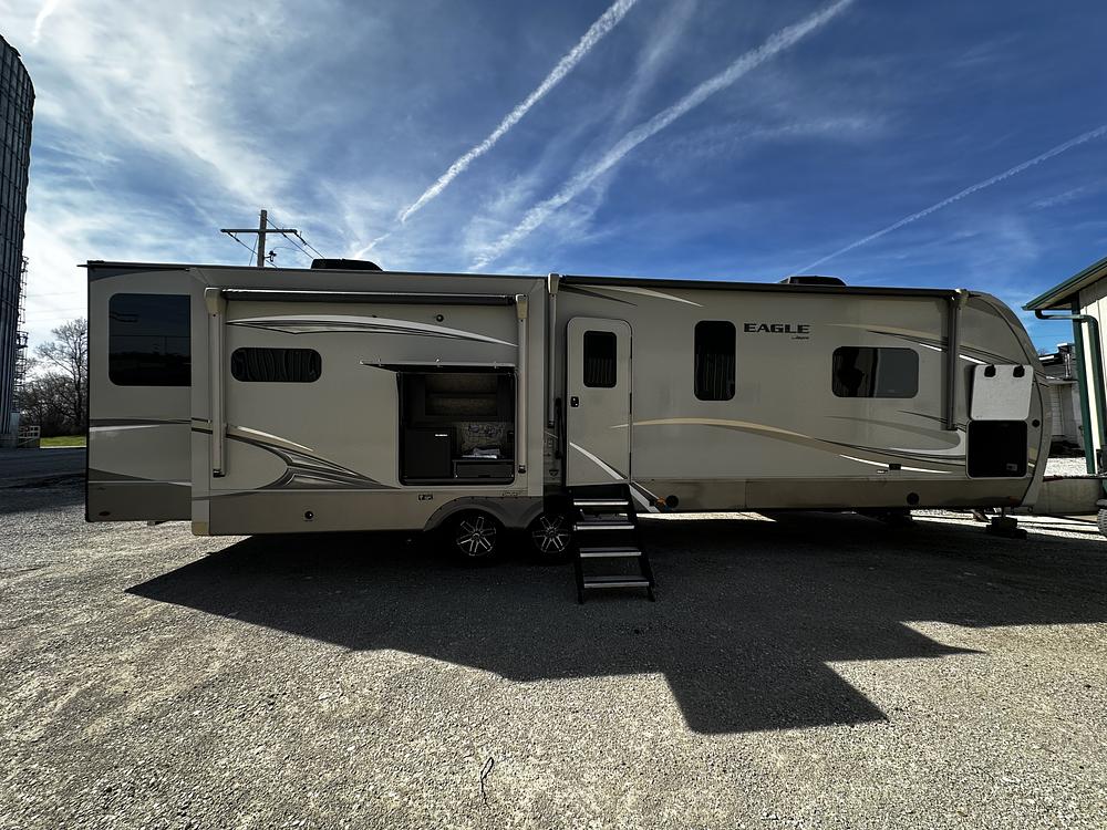 One owner, non-smoking, non-pet and always stored in a climate-controlled building. Used only locally and in excellent condition. 3 slides, 50 amp service, sleeps 4 - king Simmons BeautyRest + hide-a-bed. Residential 21 cu.ft. Fridge w/ice maker and 1,000 inverter. Oven, microwave, free-standing dinette, counter w/stools. Theater seating, electric fireplace, 51 & 32 TVs, DVD/radio. MORryde StepAbove steps, 2 power awnings. Auto leveling system + wireless backup camera. Outside kitchen w/fridge & grill. 75 gal fresh/32 gal black, 2 waste outlets. Blue Ox hitch included. Clean and ready to go!