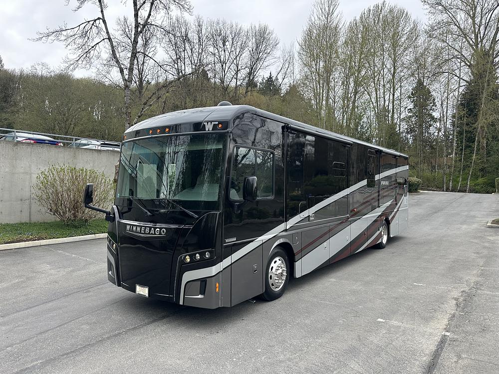 The Winnebago Forza is equipped with top-of-the-line appliances and features, such as a residential refrigerator, convection microwave, and a large flat-screen TV. The RV also includes plenty of storage space for all your belongings, as well as a generator for off-grid adventures.