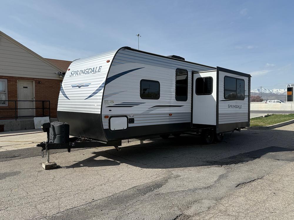Check out this 2021 Keystone Springdale 275BH bunkhouse travel trailer, packed with great features at an unbeatable price! This bumper-pull RV comfortably sleeps up to 8 with a jackknife sofa, dinette, rear bunks, and an RV queen bed in the front. This trailer is in good condition inside and out for its year. Enjoy the automatic patio awning and an outdoor area equipped with a sink and counter space. Priced to sell quickly—don’t miss your chance to own this fantastic travel trailer!