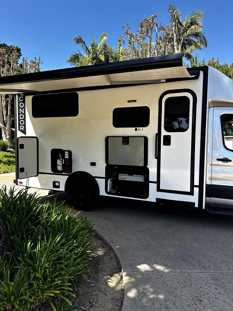 Ford 350 AWD Chassis 10 speed transmission Gas - 31 gallons Electric awnings (2) Cable TV wired for Starlinked Roof Rack Solar Panel Lithium Battery Generator outside kitchen water filtration outside shower back up camera inside shower with toilet and sink... Please see online video for more details . Never slept in no animals no smoking. Like Brand new with factory warranty low miles 7600 miles