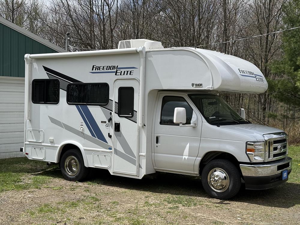 Beautiful, minimally used 2025 Thor Freedom Elite Class C motorhome in excellent, like-new condition. Only 9,000 miles and meticulously maintained with no issues. 11ft tall & 21ft long & 10ft wide. 20cubic ft storage/20gallon fresh water storage tank.
