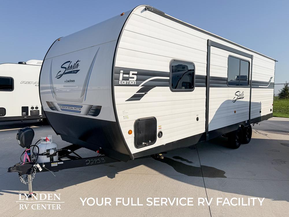 Shasta offers a wide variety of quality affordable lighter weight floorplans that are packed with convenience and value. Designed for couples and families to get away from it all and enjoy some well-deserved rest and relaxation. Shasta has been providing memories to campers for generations. Our well laid out interiors are bright and airy with modern woodgrain cabinetry, LED interior lights and residential styling countertops. You will absolutely love the large stainless steel residential refrigerator. You may want to add the optional free standing dinette with 4 chairs or LED fireplace to spark up your interior.