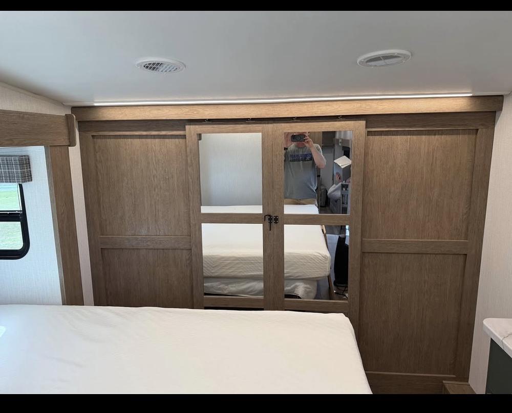 Nice Eddie Bauer 5th wheel with tankless hot water heater and smart AC thermostat control with app on phone. Camper has double AC and plenty of storage. Everything works as it should.